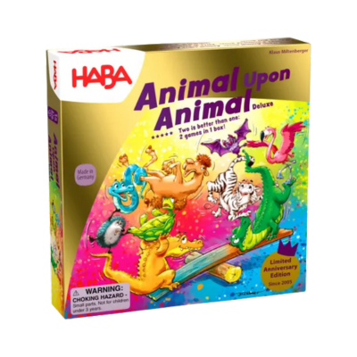 Tier auf Tier (a.k.a. Animal Upon Animal, Pyramide d'animaux, and Dier op dier) is a simple stacking game, listed for ages 4-99, with 29 cute wooden animals.