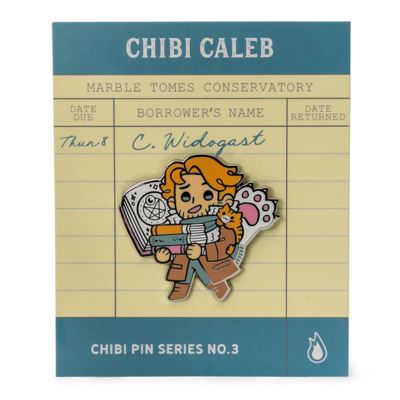 Get your scholar on with our new chibi Caleb Widogast pin designed by Critter Jenny Park (@asunnydisposish). He's got his books, his cat, and everything else needed to bring a little bit of happiness to our favorite wizard.