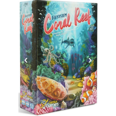 Dive deep to build your own ecological network in Ecosystem: Coral Reef, a card-drafting game of marine competition. Players choose, pass, and arrange cards representing a diversity of organisms found in the Great Barrier Reef, including coral, clownfish, sea turtles, and sharks. Earn points by aligning animals with the habitats and food sources where they most flourish. Diversify your food web to maximize your bonuses. Each time you play, you build a one-of-a-kind ecosystem as you strive to balance the delicate connections between all living things.