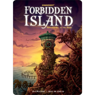 Forbidden Island is a visually stunning cooperative board game. Instead of winning by competing with other players like most games, everyone must work together to win the game. Players take turns moving their pawns around the 'island', which is built by arranging the many beautifully screen-printed tiles before play begins. As the game progresses, more and more island tiles sink, becoming unavailable, and the pace increases. Players use strategies to keep the island from sinking, while trying to collect treasures and items. As the water level rises, it gets more difficult- sacrifices must be made.