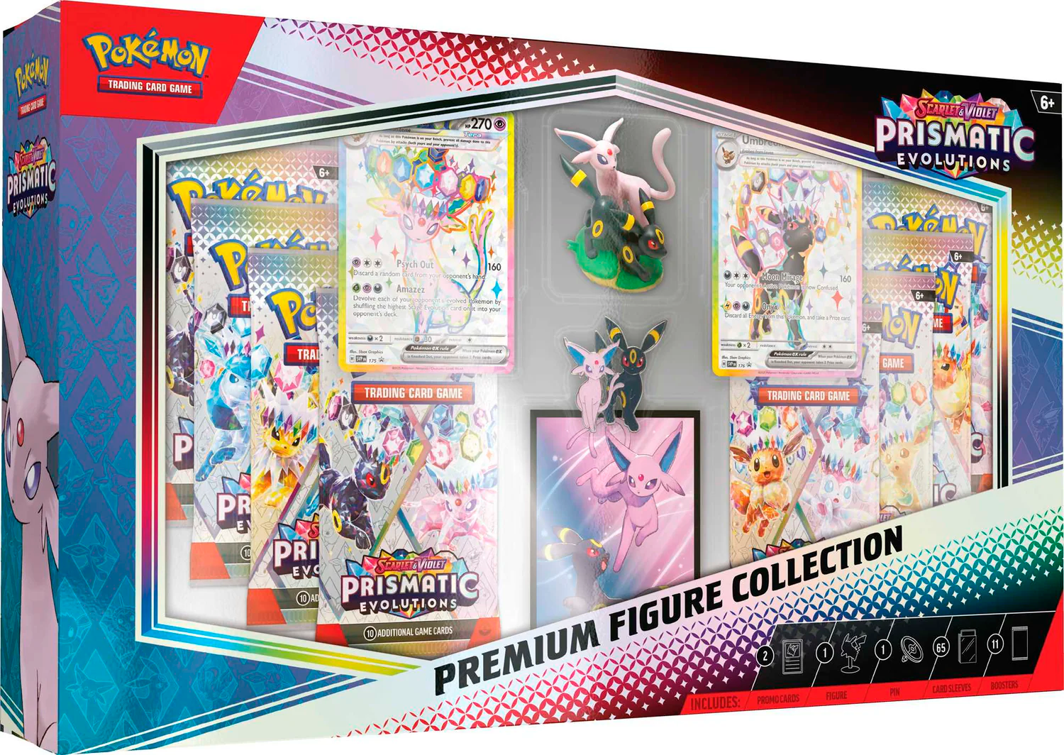 The Pokémon TCG: Scarlet & Violet—Prismatic Evolutions Premium Figure Collection includes: