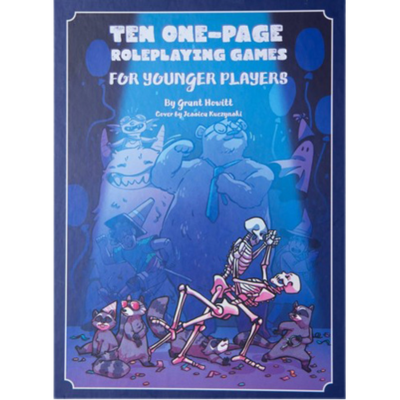 The Ten One Page Roleplaying Games (For Younger Players) volume is a special collection of ten one-page games aimed at younger readers, complete with secret back page material for every game that's never been released online. (If there were any swears or grown-up concepts in the game, we've swapped them out for more family-friendly content.)