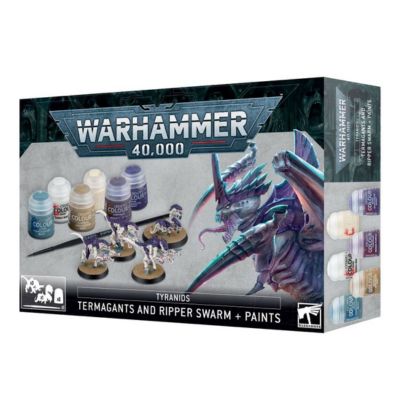 - One Termagants and Ripper Swarm + Paint Set is supplied.