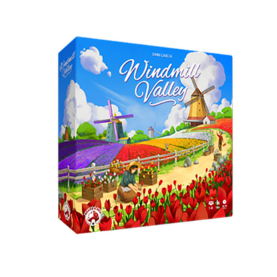 In Windmill Valley , a game inspired by the Bloemen Route, you and up to three players take on the role of tulip farmers and entrepreneurs. You will build and enhance your windmills, look for new tulip bulbs in foreign trades or among local vendors to buy and plant, and try to get an edge with hired help and lucrative contracts. Let your blooming fields make your competitors green with envy!